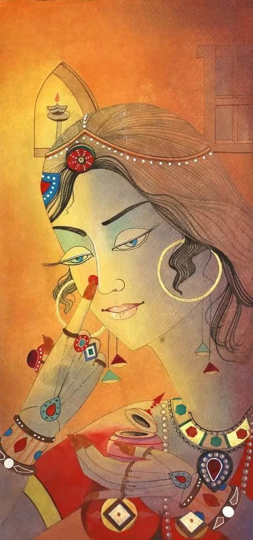 This captivating painting captures the essence of timeless beauty and elegance. The woman’s delicate features, adorned with intricate jewelry and a mesmerizing gaze, draw the viewer in. The artist’s skillful use of color and light creates a sense of depth and mystery, inviting contemplation. The intricate details of the woman’s attire and the subtle play of light and shadow add to the overall allure of the painting. This artwork is a celebration of feminine beauty and a testament to the artist’s talent.