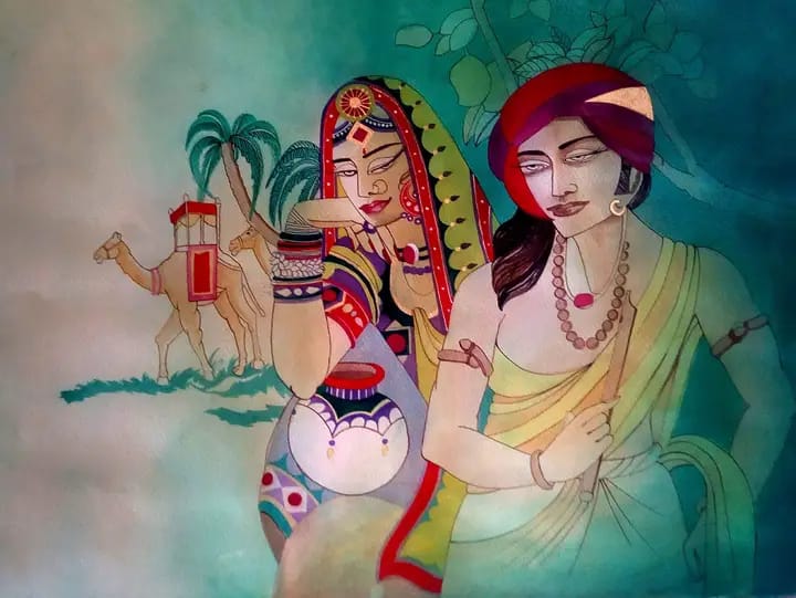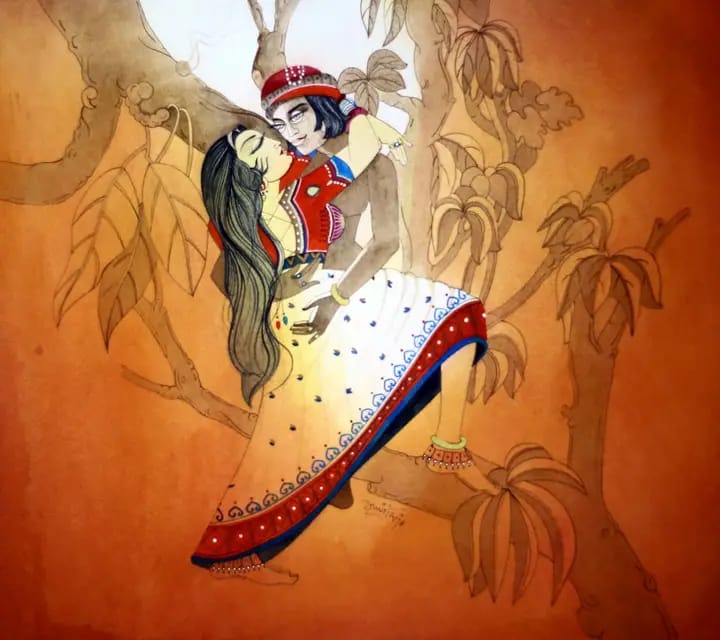 This exquisite painting captures a tender moment of love and intimacy. The couple’s embrace amidst the lush foliage symbolizes the beauty of nature and the power of love. The artist’s masterful use of color and light creates a captivating scene, drawing the viewer in to witness this private moment. The intricate details and vibrant colors bring the couple’s love story to life. It’s a perfect piece to add a touch of romance and serenity to any space.